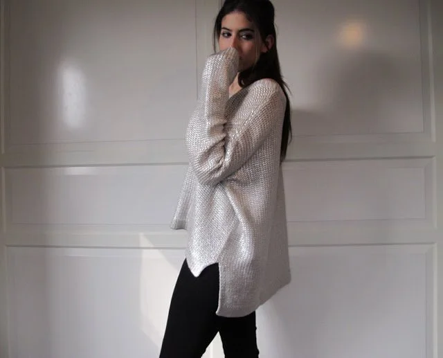 I first saw this jumper on RUMI and loved the shape, so when I saw one left on the rail, in my size, I had to grab it! I love the longer back, and the weight of it. The outside of it is silver and feels quite rough, but the inside is really soft.
