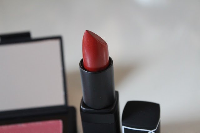 is a deep, dark red lipstick. It's described as a sheer lipstick but is very pigmented and long wearing. It has a burnt orange, brandy tone to it which fits perfectly with it's name. I find with NARS lipsticks it's important to have moisturised lips before applying them, but once they're on they look great. This one is quite daring for me but I'm loving the darker colours this Autumn and I'm definitely going to try and pull it off!