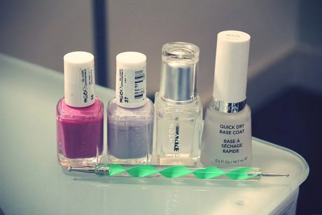 Essie 'Splash of Grenadine' | Essie 'Lilacism' | Leighton Denny Topcoat* | Revlon Base Coat* | Dotting Tool