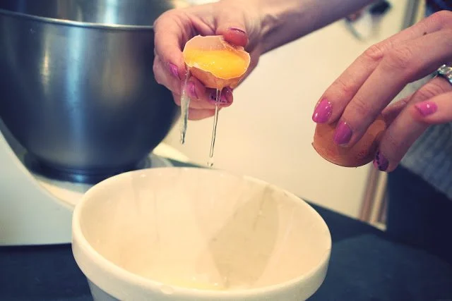 Gently combine the chocolate and butter mixture with the yolk and sugar mix and set aside.