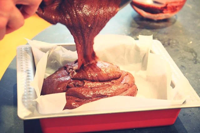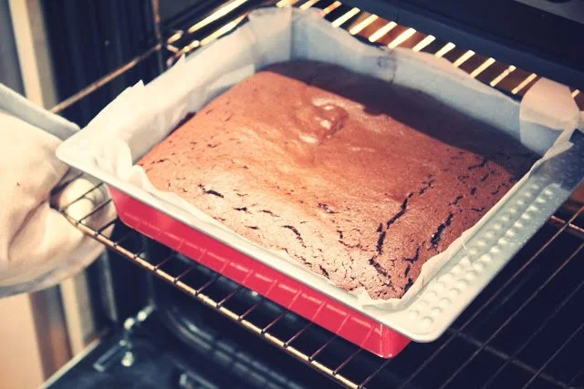 Pour the mix into the lined tray and bake in the oven for around 30 minutes or until the centre is springy to the touch.