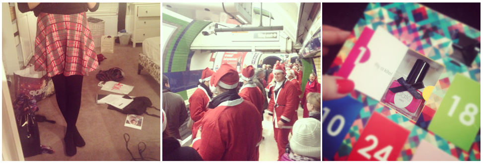 Tartan Topshop skirt | 400 santas on the tube | Day 1 advent calendar