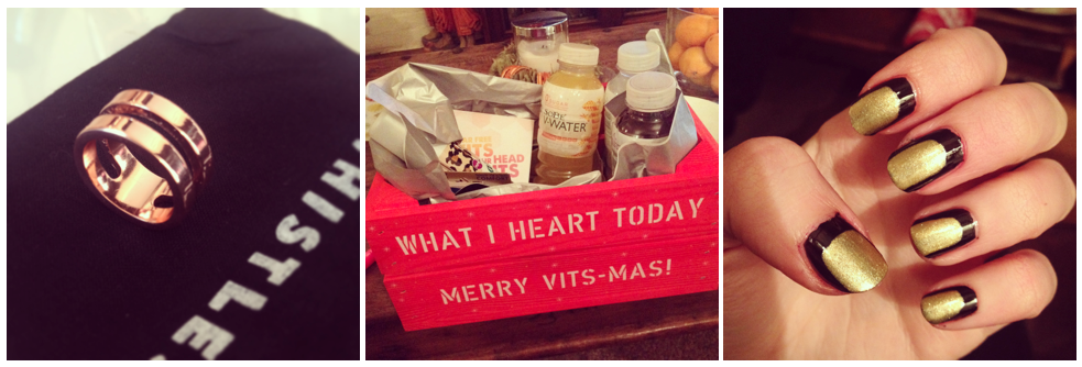 Rose Gold ring | SoBe Water | Black & Gold nails