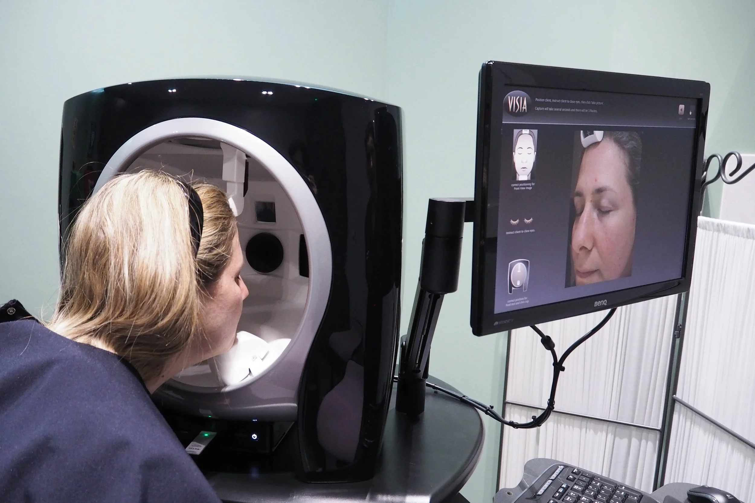 My appointment was pretty straight forward and I'm proud that the effort I've put into looking after my skin has paid off but I left the consultation thinking "wow, my sister REALLY needs to do that". So we went back! Let me tell you about my sister Carly and her skin...Carly (10 years older than me) has never worn makeup or properly looked after her skin before, I don't think she'll mind me saying that. The odd moisturiser here and there but no daily cleansing, serums etc in sight. The two things that I've always been concerned about when it comes to her skin is pollution damage, as she wears no makeup there is literally no barrier on her skin to protect it. Sun damage is also something I worry about as she's not the best with SPF and again, her skin is more exposed. It's hard to be taken seriously as the little sister so I knew that the super duper skin machine would make her realise that she needs to step up her game!