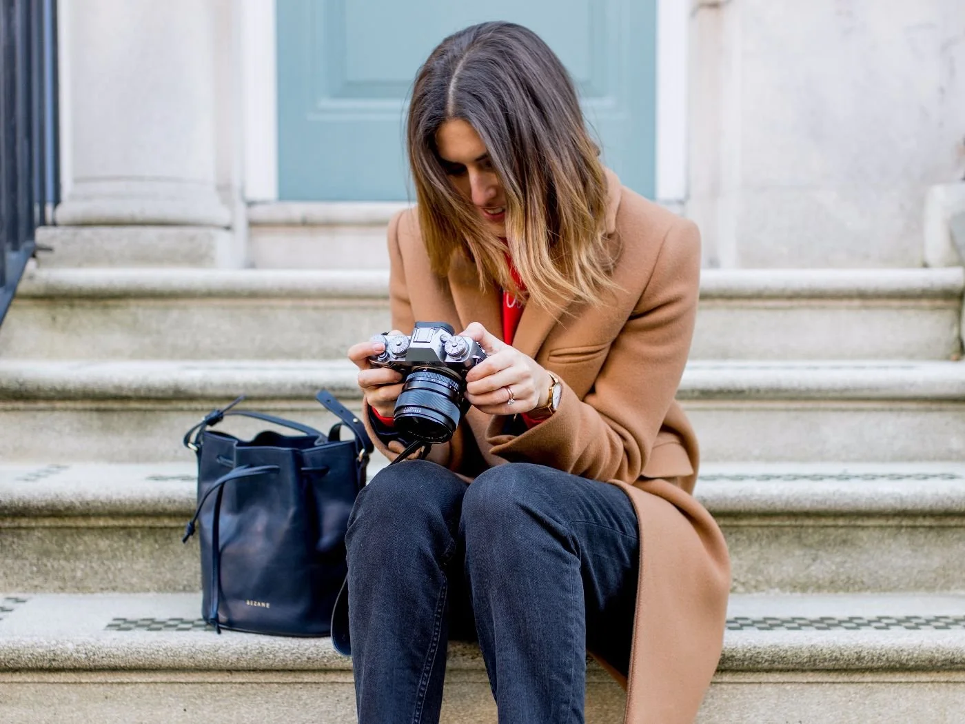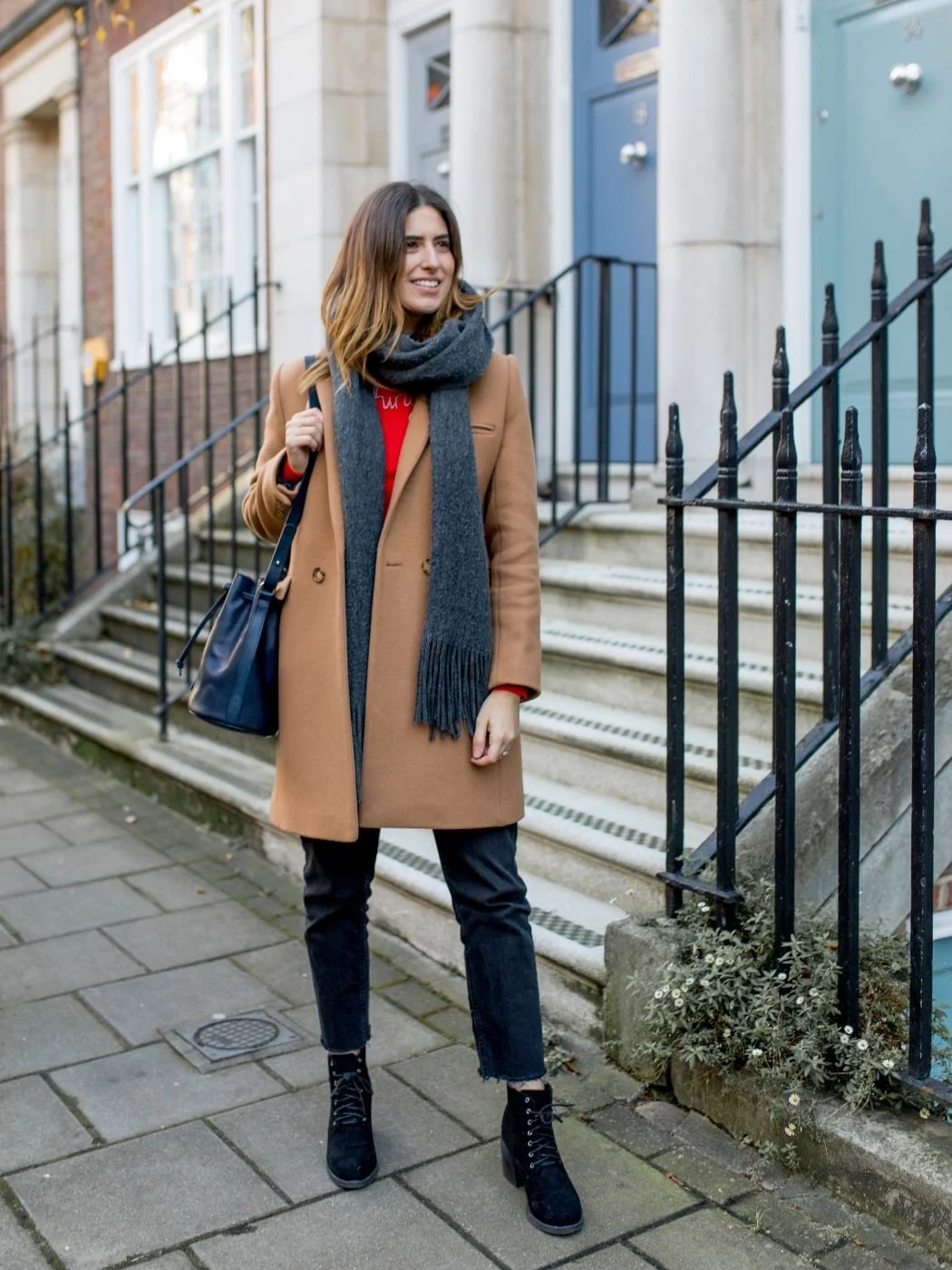 For me, dressing in winter is all about the accessories because really, who knows what's going on under the outerwear. This scarf is from last year and I still absolutely love it. It's from Topshop but I chose it because it's the perfect shade of grey, it's long enough to wrap around twice and I love a bit of tassel so the scarf doesn't just suddenly end and hang in a weird way. The standout accessory in this outfit has to be this Sezane Farrow bag and I picked it knowing it would make the perfect camera bag.
